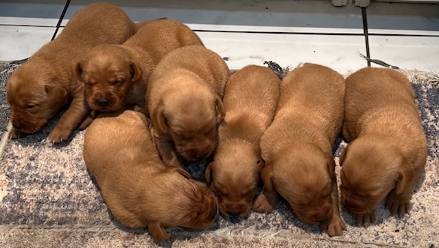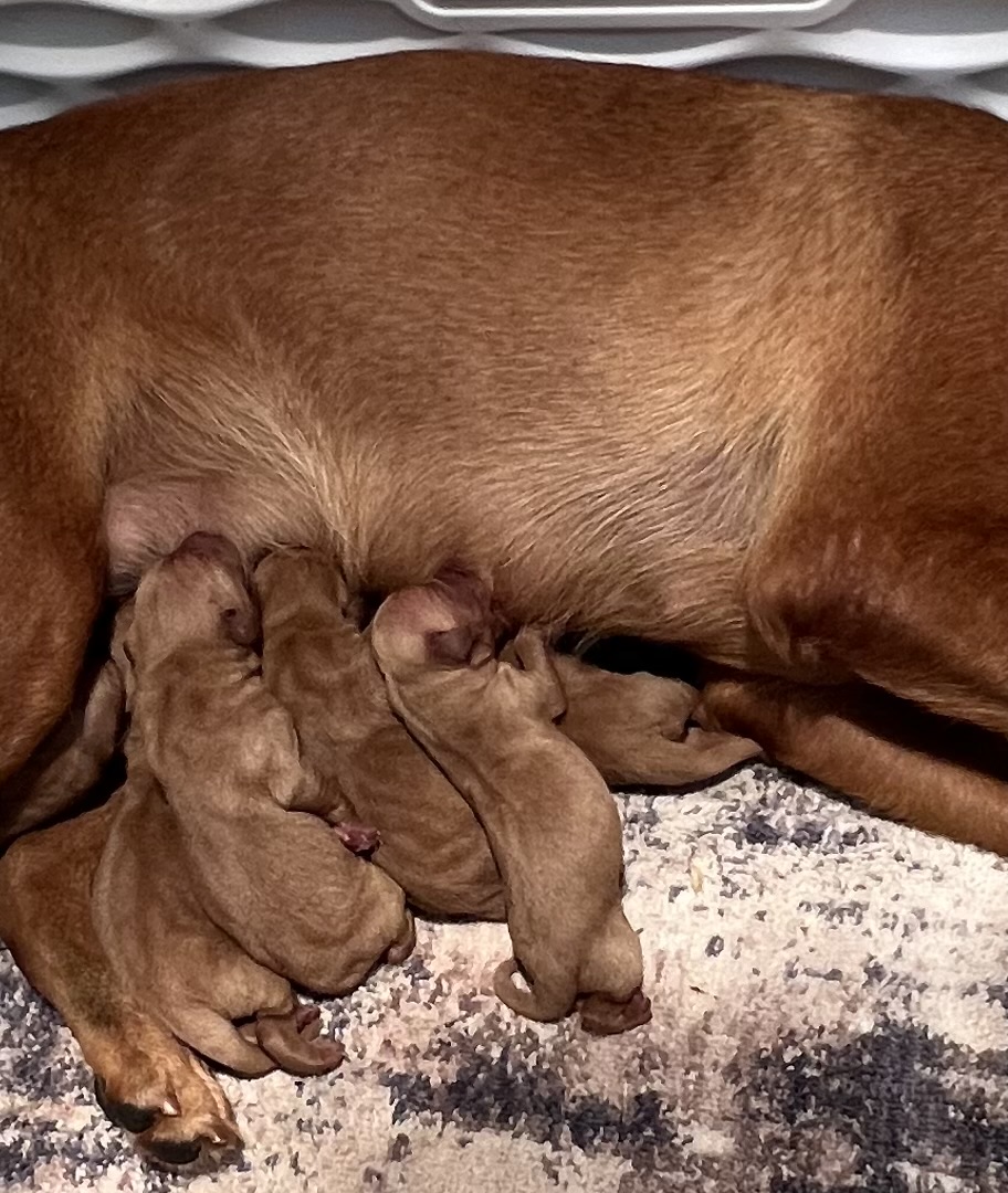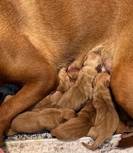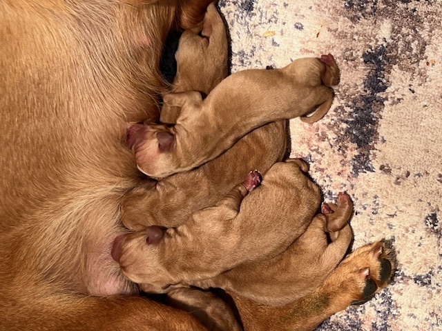 Clover has 7 pups born September 28th, 2025; 4 females & 3 males